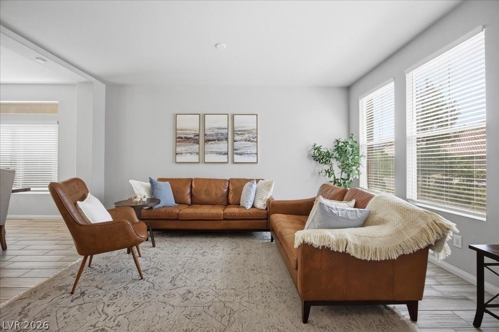 WELCOME TO SPRAWLING 2-STORY HOME! FLAWLESS CURB APPEAL WITH PAVERS, EASY TO MAINTAIN LANDSCAPING, & UPGRADED STONE EXTERIOR! ENTERING THE HOME FAMILY/ DINING ROOM COMBO GREETS YOU! GREAT ROOM COMBINE GORGEOUS KITCHEN, BREAKFAST NOOK, & LIVING ROOM WITH FIREPLACE! KITCHEN LOOKS TOWARD BACKYARD & FEATURES STAINLESS APPLIANCES, GRANITE COUNTERTOPS, TILE BACKSPLASH, LARGE WINDOWS ALLOWING FOR NATURAL LIGHT, ISLAND WITH SEATING, RECESSED & PENDANT LIGHTING, PLUS WALK-IN PANTRY! SECOND STORY PRIMARY SUITE SEPARATE FROM ADDITIONAL BEDROOMS! PRIMARY SUITE FEATURES DOUBLE DOORS, TWO CEILING FANS, WALK IN CLOSET, & PRIMARY BATH FEATURES OVERSIZED GLASS ENCLOSED SHOWER + DUAL SINKS EACH ON IT'S OWN WALL! EACH BEDROOM HAS CEILING FANS! SECOND PRIMARY SUITE FEATURES OVERSIZED BEDROOM WITH BATH FEATURING SHOWER/ TUB COMBO! NEAR GREAT SCHOOLS, NEWLY BUILT BATTLE BORN PARK, & SHOPPING NEARBY! WELCOME HOME!
